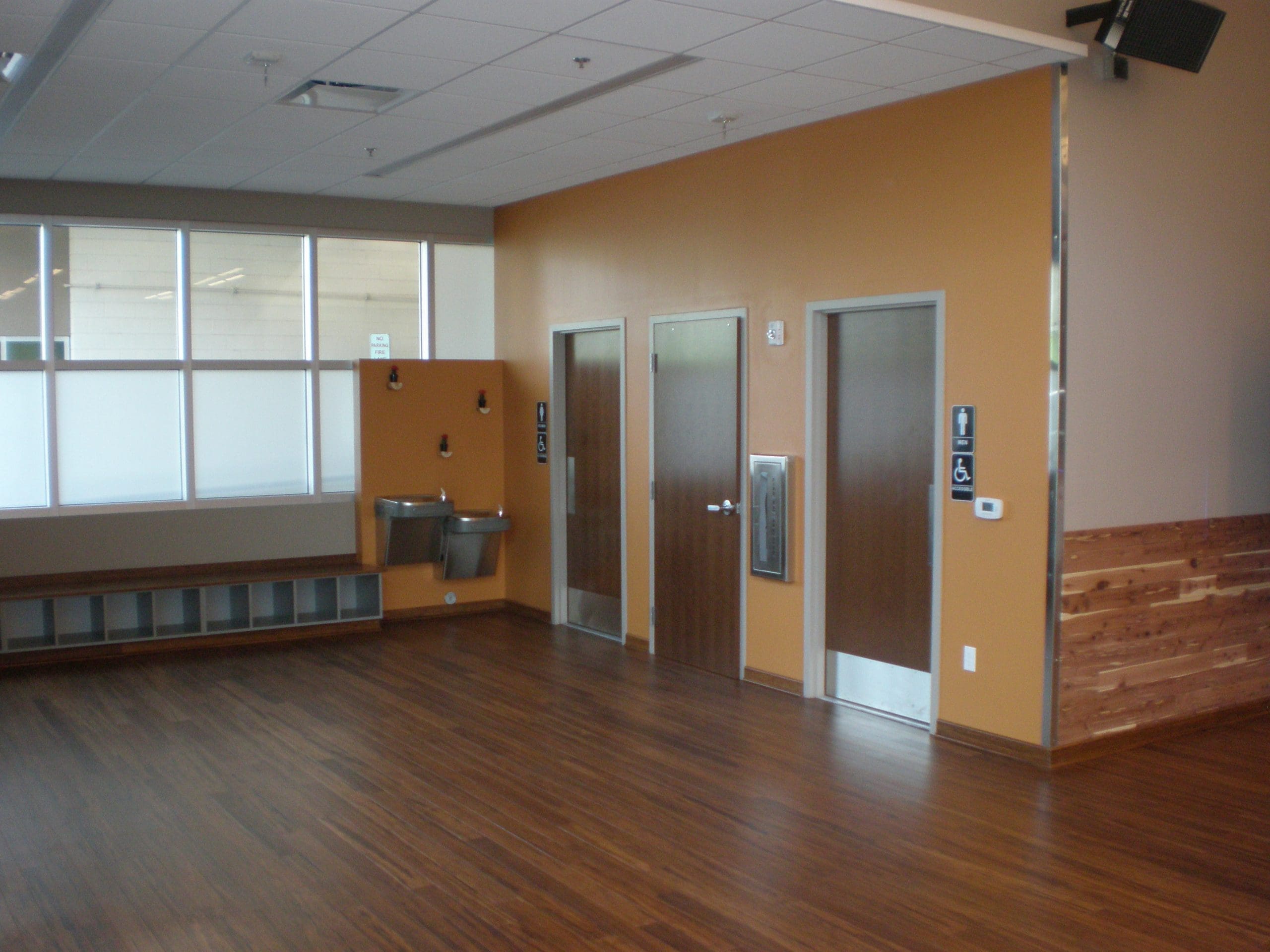 This interior build-out turned a blank slate portion of a city parking garage into a warm, welcoming yoga studio. The scope of work included everything from concrete demo and patch-back to custom cabinetry, imported bamboo flooring, sleek drywall partitions, and a waterfall feature to bring the space to life.